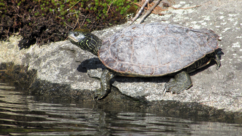 The Northern Map Turtle (Graptemys geographica) is a common inhabitant of medium to large lakes in Frontenac Provincial Park and is listed as a species of Special Concern by the Committee on the Status of Endangered Wildlife in Canada (COSEWIC). The Frontenac Arch region is also home to significant populations of Blanding’s Turtle (Emydoidea blandingii) and the Eastern Musk Turtle (Sternotherus odoratus), both of which are listed as Threatened species by COSEWIC.