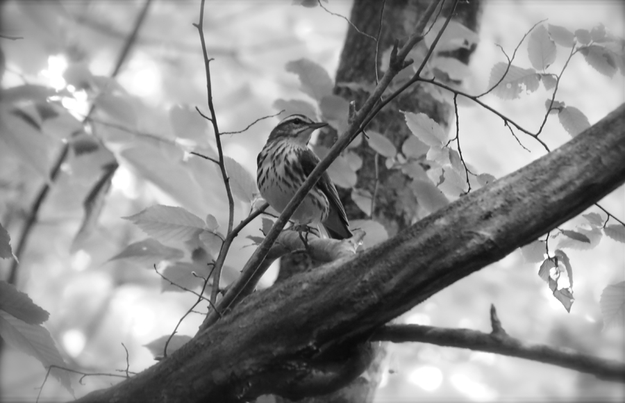 This male Louisiana Waterthrush has been singing away since May 7, 2012 but has yet to attract a female. Breeding was successful at this location in 2010 and 2011 but given that it’s nearly June already, the prospects are looking bleak for 2012. He sang constantly for the 1.5 hrs I was in the area – averaging one song every 7-10 seconds. This is typical of males arriving on territory in late April and early May. Song frequency drops considerably after pair bond and nearly stops entirely during advanced nesting stages. His spirited singing is indicative of an unmated male advertising for a mate. Hopefully his luck will change soon.