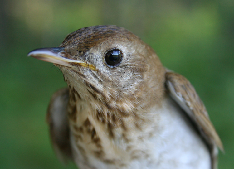 First the good news. Numbers of birds are up from last year at MABO, although still considerably lower than in 2009. For comparison, in 2009 we captured 91 birds total through visits 1-3 (72 new/19 rec) while we’ve captured 60 (39 new/21 rec) for the same period in 2012. Very pleased to see that Nashville Warblers and Northern Waterthrushes have returned to the site. We banded a whopping eight Northern Waterthrushes here in 2009 but didn’t even hear or see one a year ago. We’ve banded two adults of each species so far in 2012. Annual totals of Veery and Wood Thrush have been relatively consistent in abundance since 2009 and have returned in expected numbers again this year. Two new species have been recorded for the site; a singing Brown Creeper was detected on June 7 and White-throated Sparrows have been recorded singing on each visit. Notable absentees so far include cuckoos, Hermit Thrush and Field Sparrow.