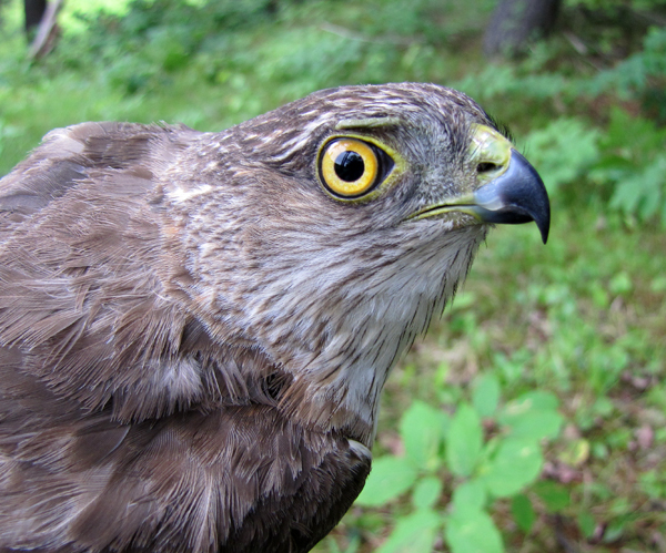 The third round of visits for the 2011 Monitoring Avian Productivity & Survivorship (MAPS) season were completed on June 27 (BLAK), June 29 (MABO) and June 30 (RRID). The weather in June has actually been rather normal and lacking in extended periods of unusual temperatures or precipitation – good for us and good for all the passerines raising young! A total of 17 (9 new, 8 recaptures) birds were captured at MABO during visit 3, the highlight of which was the second-year Sharp-shinned Hawk pictured above – a first for our MAPS efforts to date. Also of note was the recapture of five Veery from previous seasons, including three from our first couple of visits in June 2009.